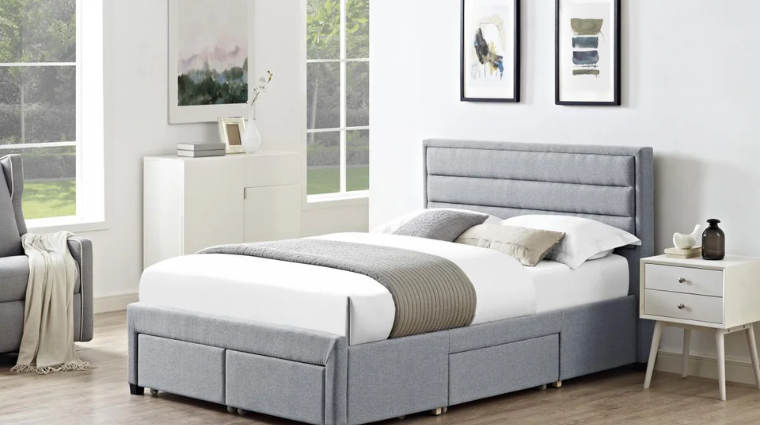 Boteh 4 Drawer Linen Fabric Double Bed Grey
