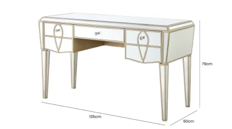 HUSUK-Mirror Champagne 3 Drawer Dressing Table