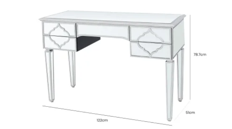 HUSUK-Silver Mirror 5 Drawer Dressing Table