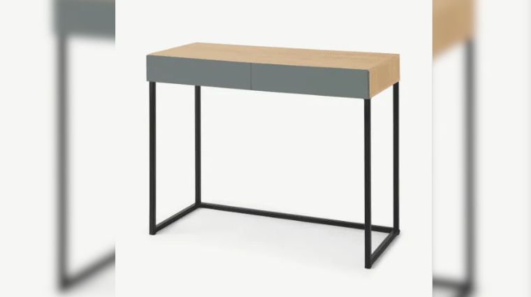 Oak Desk/Dressing Table with Grey Drawers and Steel Legs