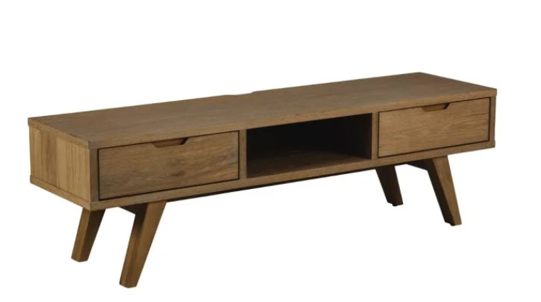 Sleek-Line TV Unit with 2 Drawers in White Oak.