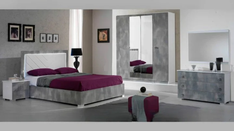 Ben Company Stella White and Grey Finish Italian Bedroom Set
