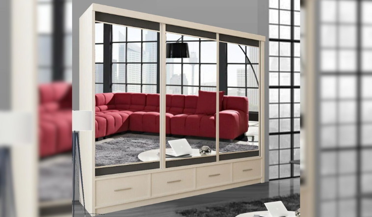The Royal Sliding Mirror Door Wardrobe elevates your bedroom with mirrored sliding doors and a spacious interior. It includes hanging rails, shelves, and drawers for organized storage. The mirrors enhance the room visually while serving practical purposes. Crafted with high-quality materials, it promises durability and long-term use. Perfect for both small and large bedrooms. Get it at Artisan Furniture Store.