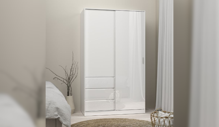 Naya Wardrobe with 2 Sliding Doors 1 Door 3 Drawers in White High Gloss