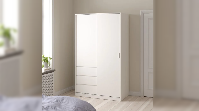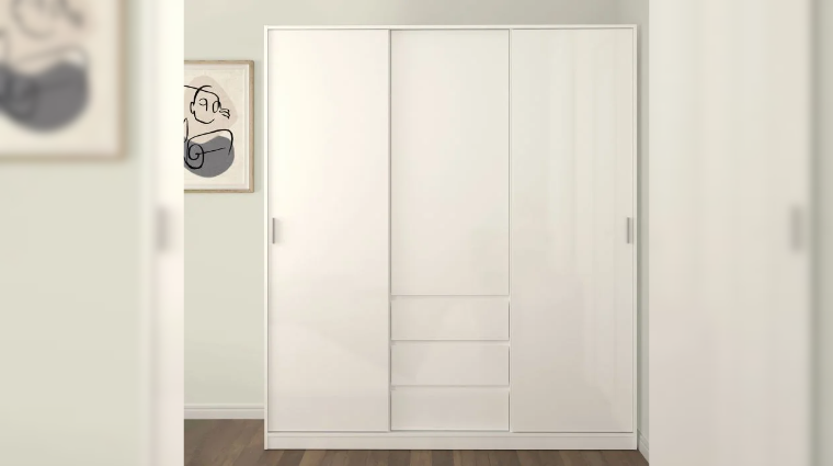 Naya Wardrobe with 2 Sliding Doors + 1 Door + 3 Drawers in White
