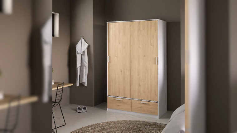 The Range Wardrobe blends wood-effect and white finishes for a contemporary look. Its sliding doors and drawers provide ample storage for organized clothing and accessories. Durable construction ensures long-term use. Perfect for modern bedrooms requiring both elegance and functionality. Available now at Artisan Furniture Store