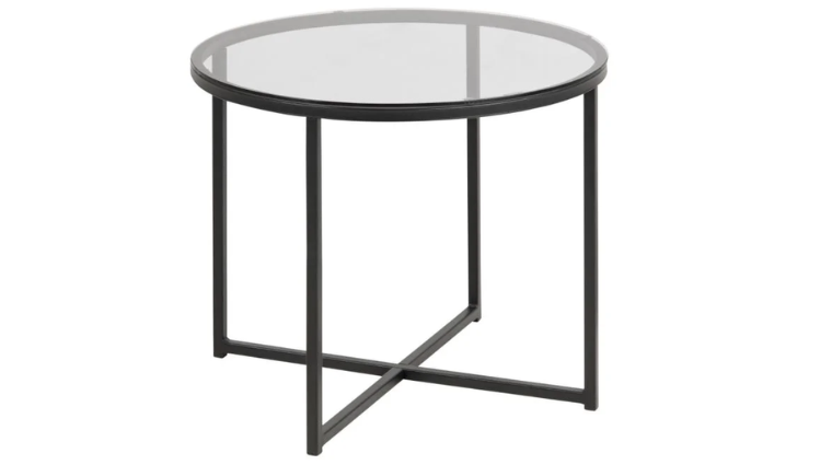 Sutton Side Table in Black with Glass Top.
