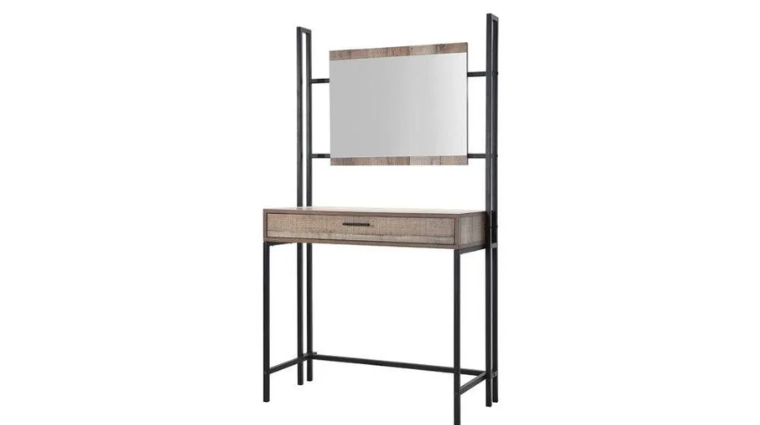 The Oak Desk/Dressing Table with Grey Drawers and Steel Legs is a sleek and multifunctional furniture piece ideal for modern interiors. The natural oak top adds warmth, while the grey drawers create a stylish contrast with a contemporary feel. Strong steel legs ensure stability and long-lasting durability. Available at Artisan Furniture Store, this design offers practical storage for daily essentials while keeping your space organized. It is a perfect blend of elegance, functionality, and modern craftsmanship.