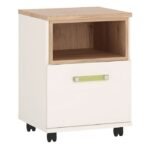 The Alice collection is perfect for all age groups, finished in light oak and stunning white high gloss. This handy I door mobile chest with open shelf fits perfectly under matching desk unit.