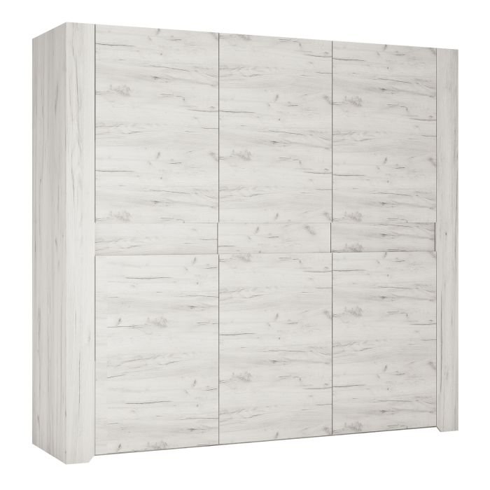 The Angel 3 Door Wardrobe has plenty of space with 4 hanging rails and lots of shelves – a great addition to any bedroom. This beautifull bedroom collection is contemporay and stylish and suitable for all age groups, finished in a modern hard wearing white crafted Oak melamine.