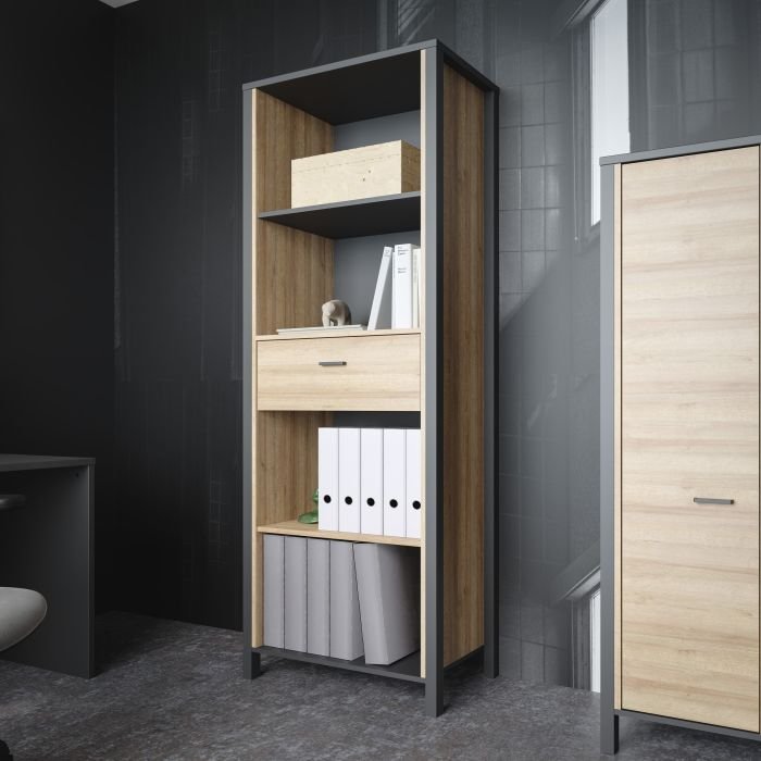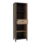 Ben, a captivating and contemporary collection which has a perfect blend of the Riviera Oak decor with deep black accents, this collection immediately captivates attention with its originality. The sleek black metal handles add a touch of elegance, while the tables boast robust metal legs in a frame-like design, contributing to a distinct loft character within the space. Beyond its striking aesthetics, Ben prioritises functionality with its ingenious storage solutions. Cabinets, chests of drawers, and display cabinets offer ample space to organise belongings, while the thoughtfully equipped tables come with practical drawers. This versatile collection effortlessly fits into any room, from the living room and dining area to the hall, youth room, or bedroom, adding a touch of sophistication and practicality to every corner of the home.
