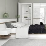 Kingsize Bed in white with an Oak trim with Lift Up Function. Unconventional design - a proposal for the followers of the latest trends. The clever mix of scratch resistant white melamine with beautiful high gloss sides and oak melamine trim makes this top quality collection of furniture the ideal destination for the most modern of homes, the massive range that includes many cabinets and wall units fulfils every storage and display option.