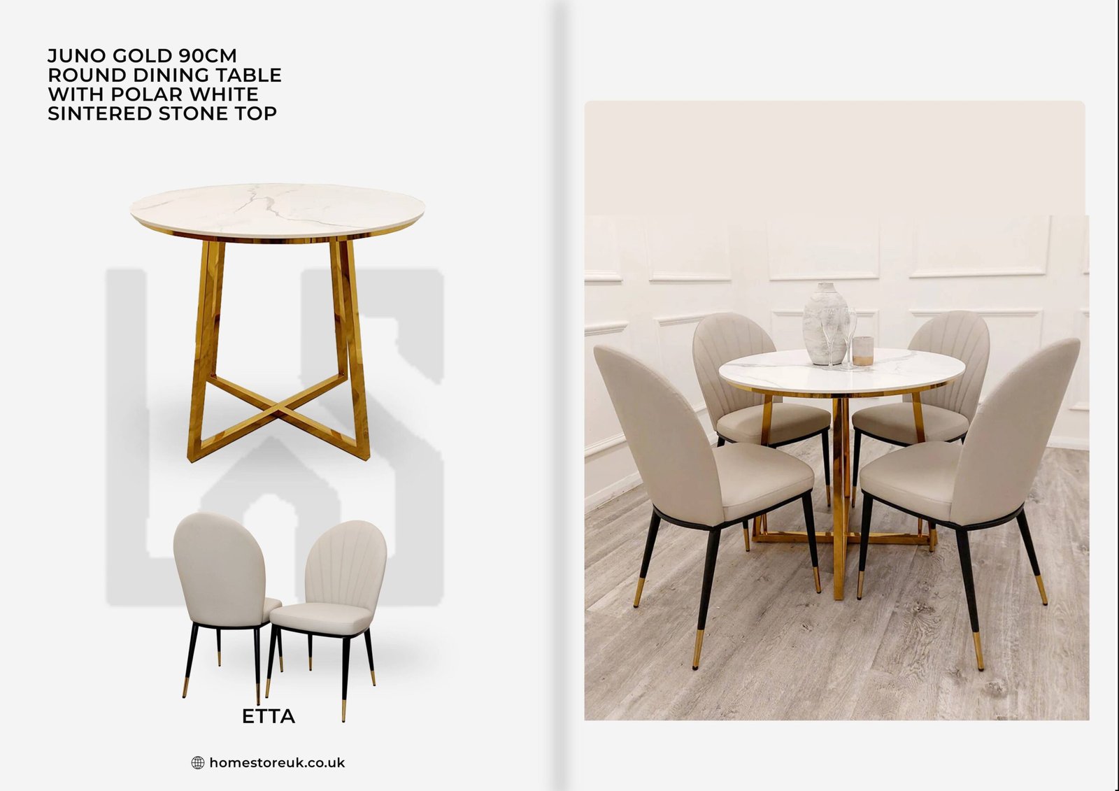 Juno Gold 90cm Round Dining Table With 4 Etta Chair’s