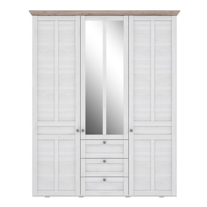 Maddox 3 Door Wardrobe in Snowy Oak/Oak Nelson
