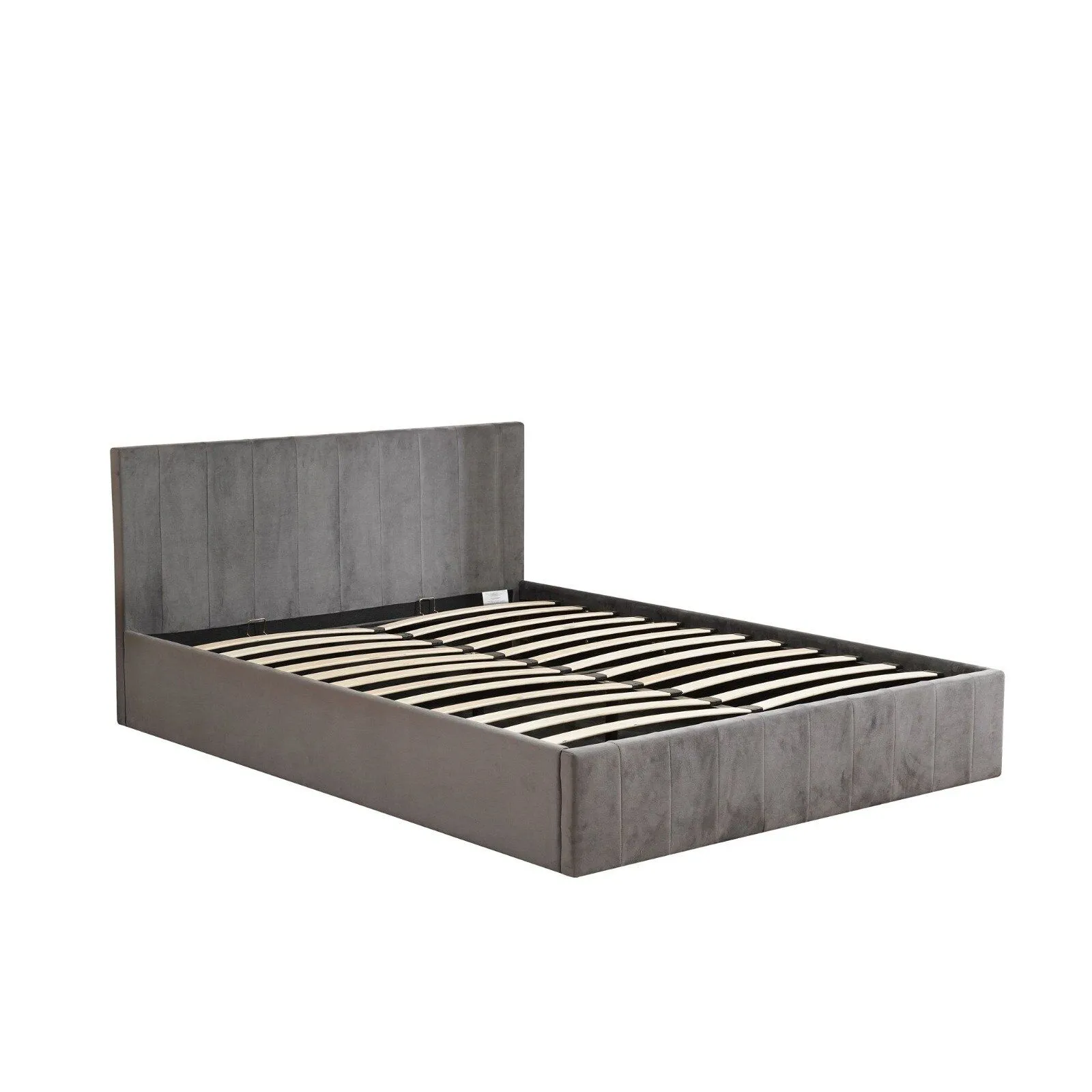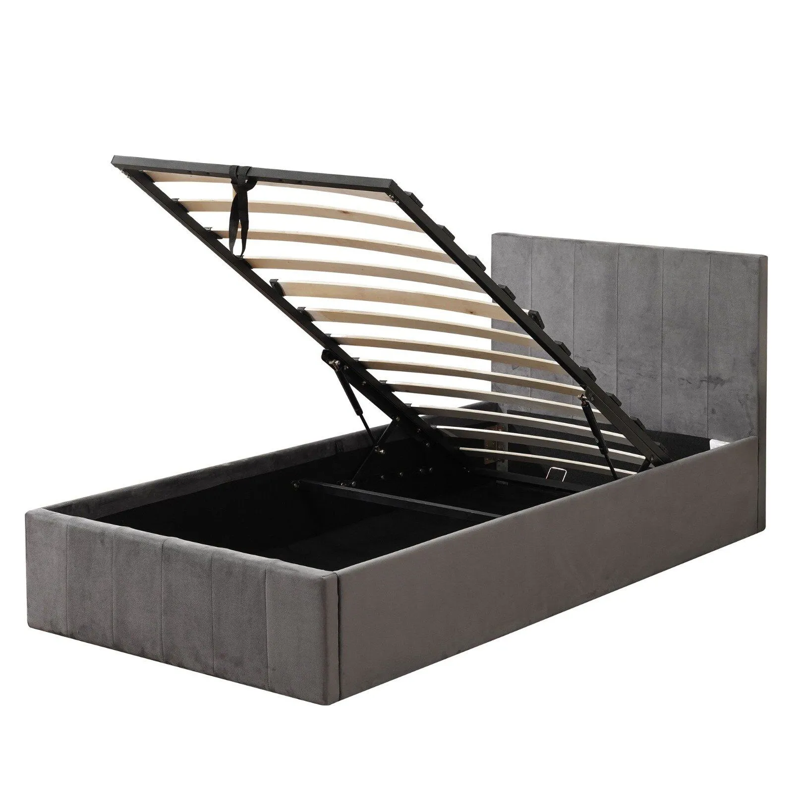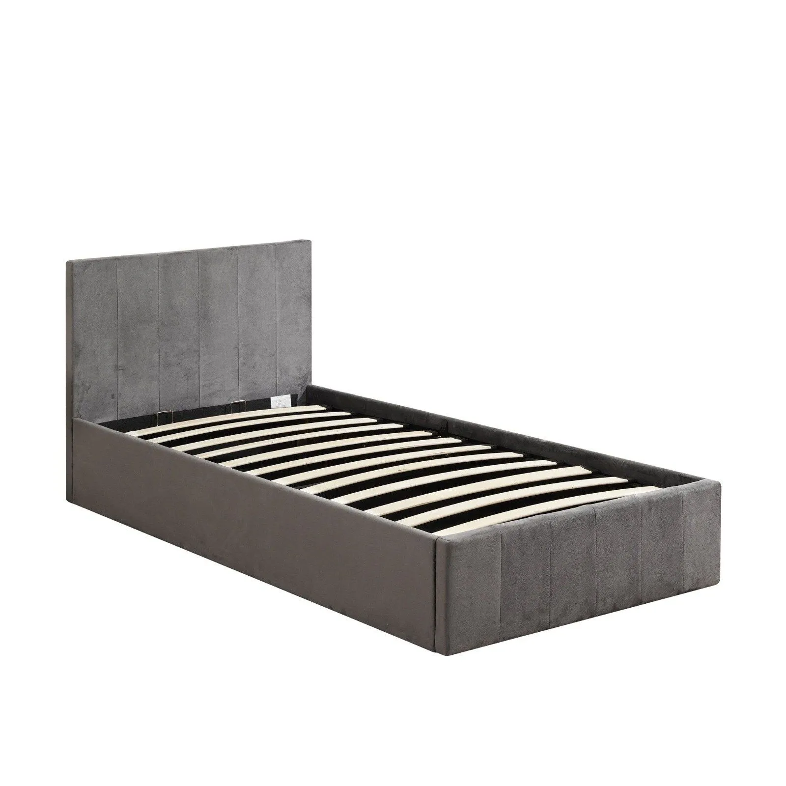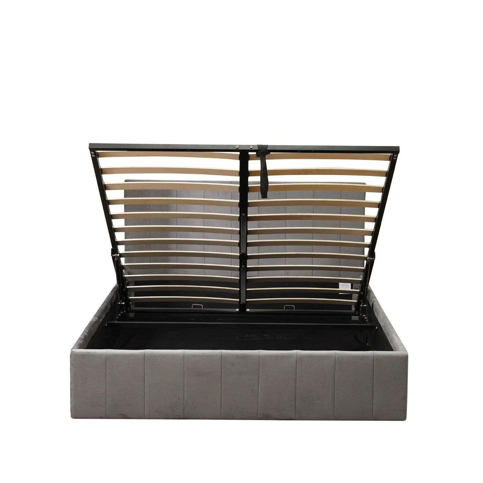 Miami Grey Plush Velvet Ottoman Storage Bed – Available in 3 Sizes (Single, Double, King)