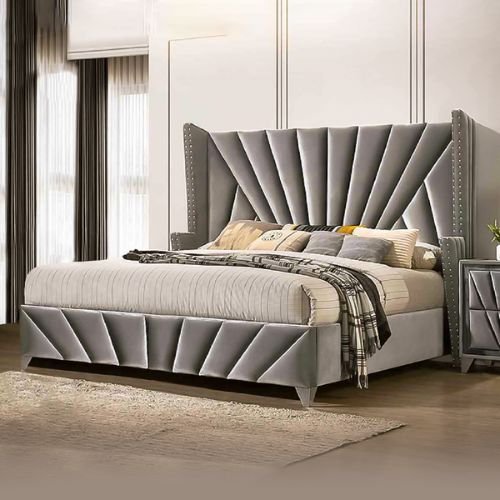 Premiere Art Deco grey upholstered bed – Plush Velvet – Choice Of Colours