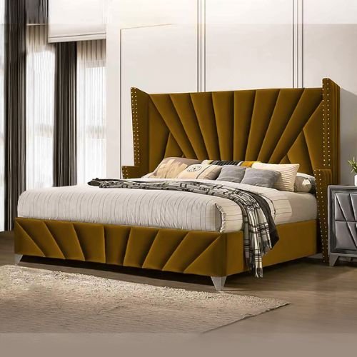 This is an attractive bed that has an exclusive style, handmade plication complemented with parts and edging across the headboard, this excellent bed frame is sure to leave a long-lasting impression on any room decor. Available in much magnificent plush
