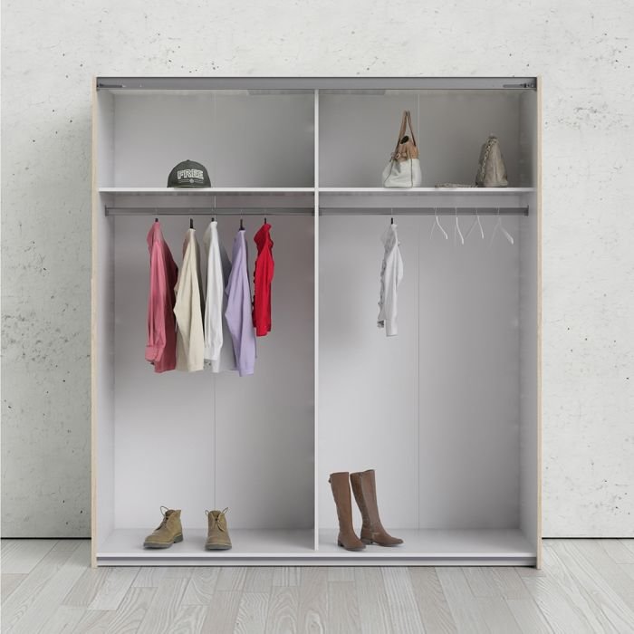 Ross Sliding Wardrobe 180cm in White with Oak Doors with 2 Shelves
