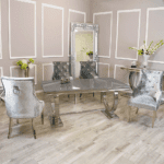 For a simple yet luxurious style choose our Duke Dining Chair Range. This range features a more understated design with a simple chrome ring knocker and plain back design. However, it’s soft velvet finish complete with studded detailing adds a touch of luxury. Choose from a range of colours including, Black, Grey, Pink and Blue.